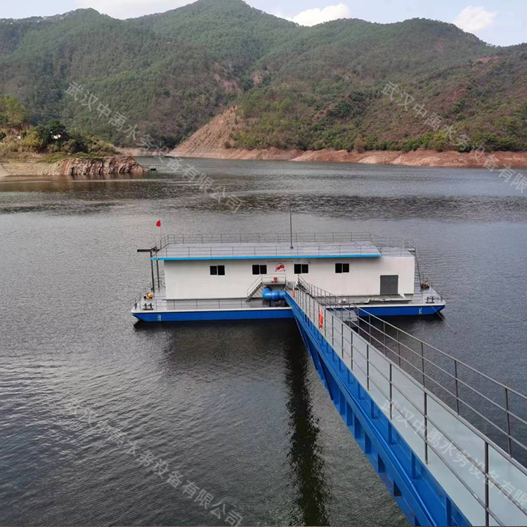浮桶式移动式取水泵站其主要特点是:机动灵活、方便快捷、安全可靠,主要用于水库、江河、湖泊内的取水。